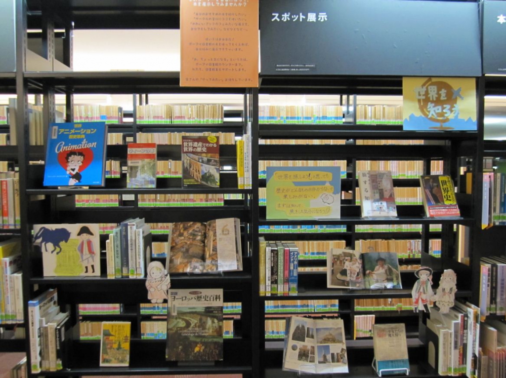 ポーアイ図書館の学生ボランティア2名(薬学部1年素川 陽加さんと谷口 彩華さん)が、2階スポット展示コーナーに、「世界を知ろう」と題して、世界の歴史本を展示しています。