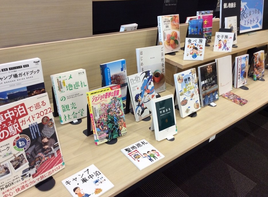 「旅にまつわるエトセトラ」では、「聖地巡礼」「ご当地飯」「ダークツーリズム」などジャンルごとに展示しています。