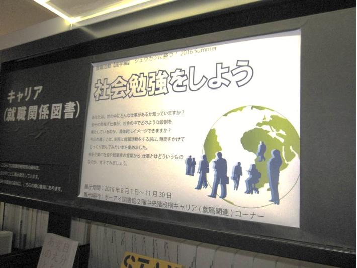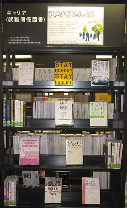 今回の展示では、実際に就職活動をする前に、時間をかけてじっくり読んでみたい本を集めました。