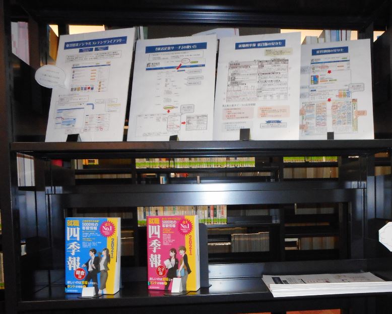 図書館のホームページには、就職情報を家で集められるデータベースがあります。データベースには就活生向けのページがあり、効率的に就職情報を集めることができます。データベースの使い方を動画で紹介しているものもありますので、お家で目指す業界を広くながめたり、狙った企業について深く調べてみましょう。