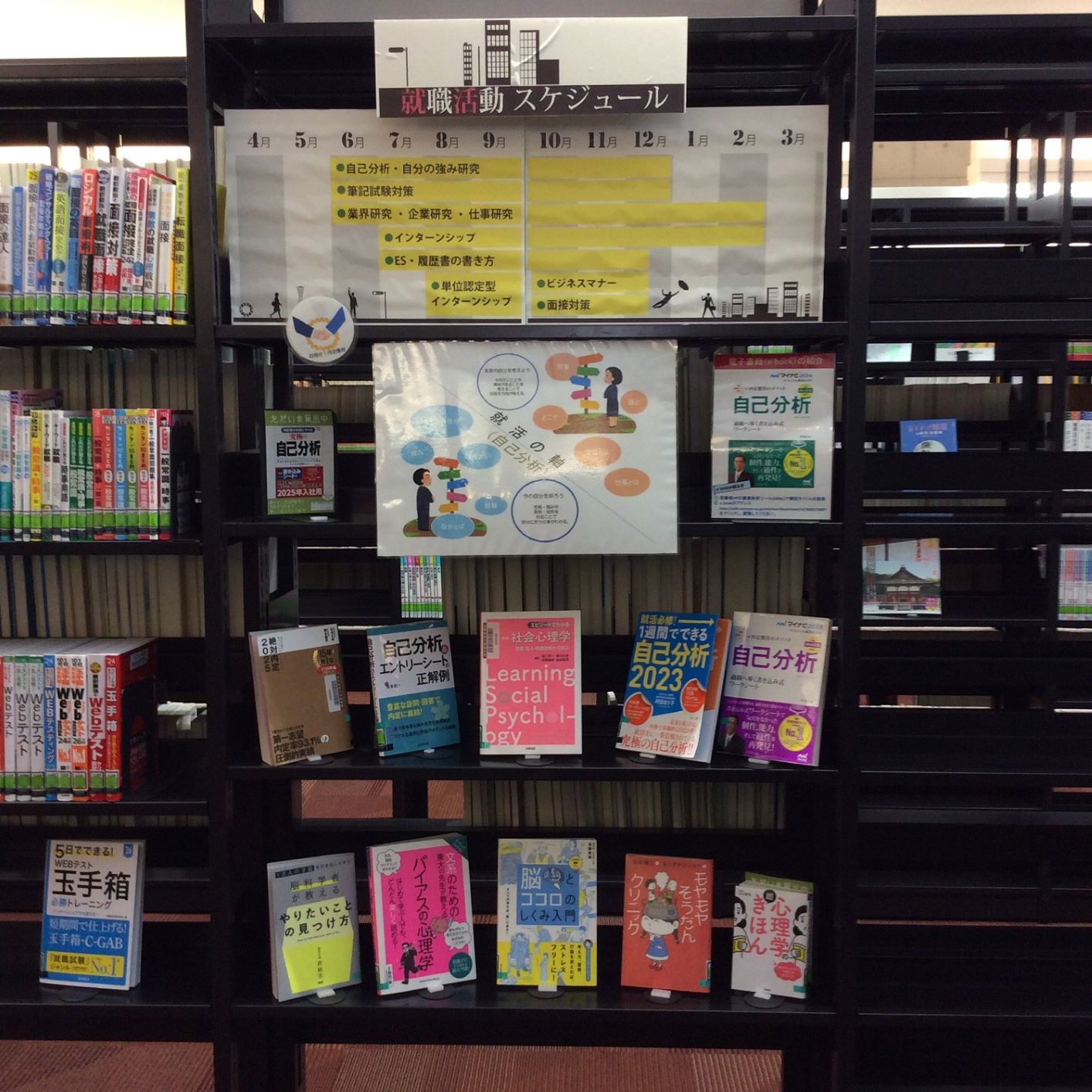 今回のキャリア展示では、自己分析の本を集めました。