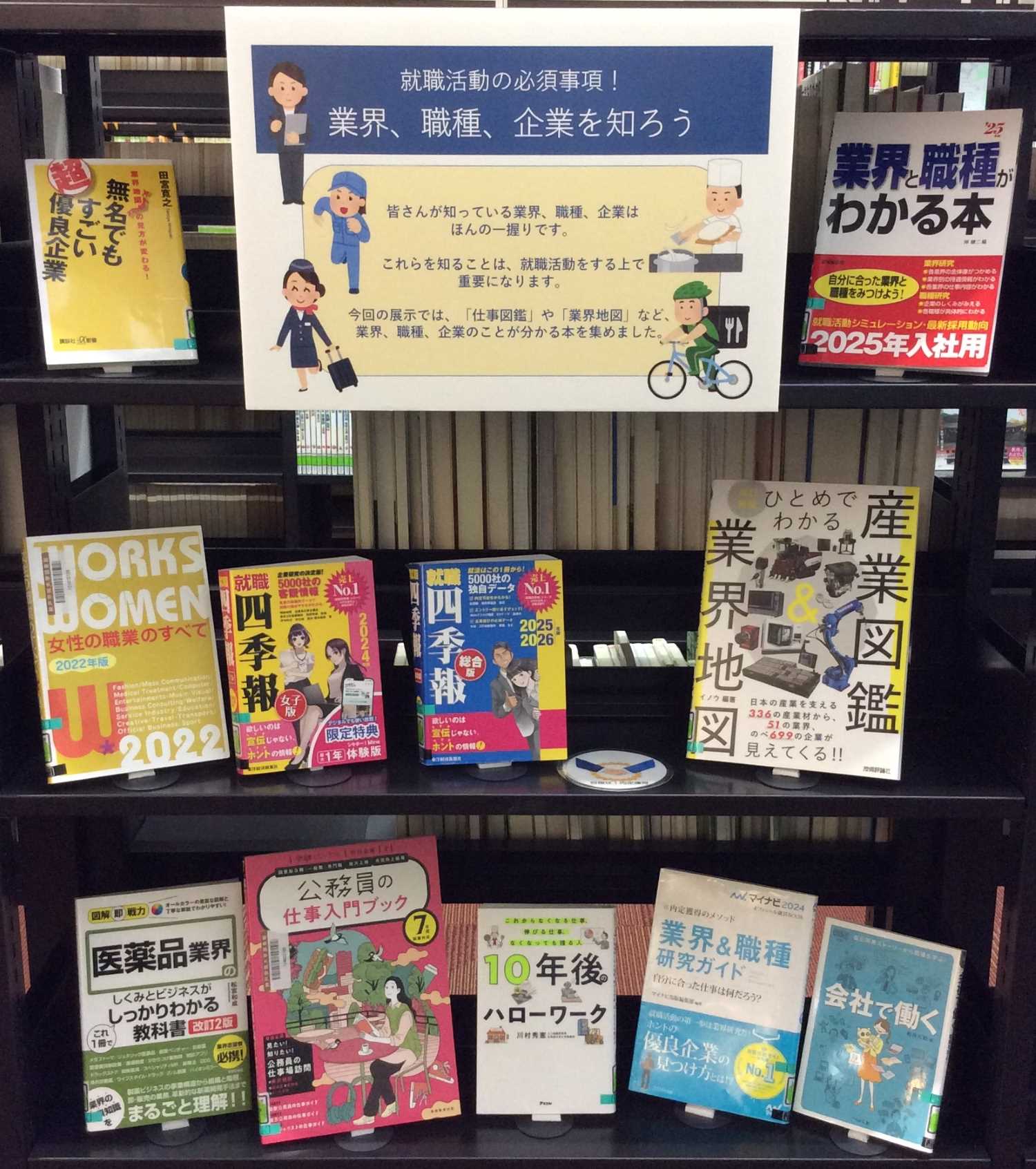 今回の展示では、業界、職種、企業のことが分かる本を集めました。
