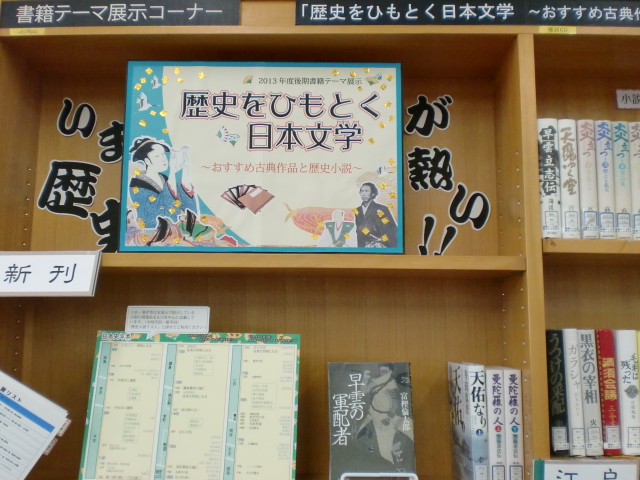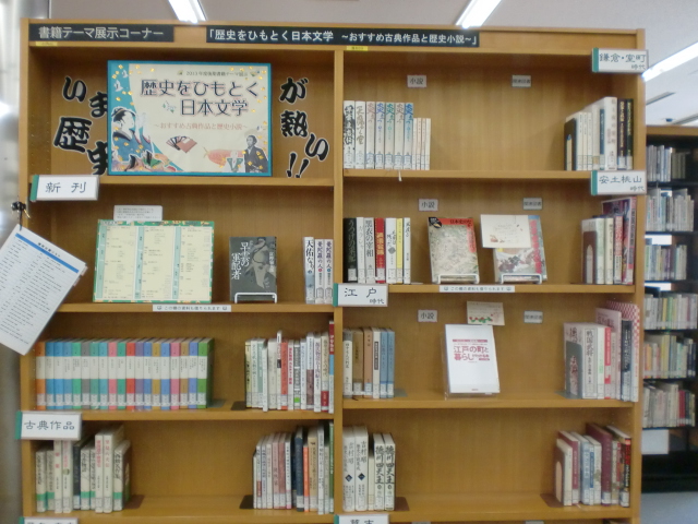 今回の展示ではそれぞれの時代の文学作品や、歴史上の人物・事件を扱う歴史小説にあわせて、時代背景を考察する本も紹介しています。物語として読むことで歴史を身近に感じ、中学や高校の頃に習った日本史とはまた別の面白さに出会えるはず。これを機に歴史の魅力にはまろう!展示期間は2014年3月末まで行っていますので、ぜひ一度お立ち寄りください。