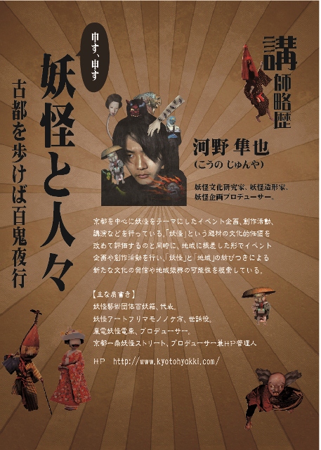 京都在住の妖怪研究家である河野隼也氏をお招きして、京都にまつわる妖怪の伝承はもちろん、それらを活かした地域振興にいたるまで、「妖怪」という題材の文化的価値についてお話していただきます。