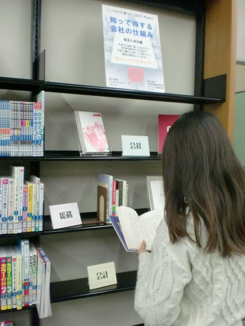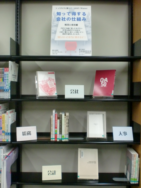 今回のシュウカツのテーマは会社! あなたは、自分が働くことになる会社について、どれだけ知っていますか?経理・総務・人事など、一言で会社と言っても様々な部署があり、それに応じた仕事があります。 今回は会社に関する図書と、会社で働くにあたって役立つ図書を展示しています。 知らないと、本当に損するぞ!