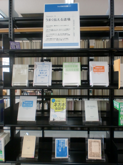 あなたの話は、聞き手にしっかりと伝わっていますか。話し方や文章によっては、伝えたいことが理解されなかったり誤解が生まれてしまうこともあるかもしれません。そこで今回の展示では、話し方や文章の書き方、またコミュニケーションの取り方などを学べる図書を集めました。面接や職場で自分の言いたいことを正確に伝えられるように、表現力を養いましょう!
