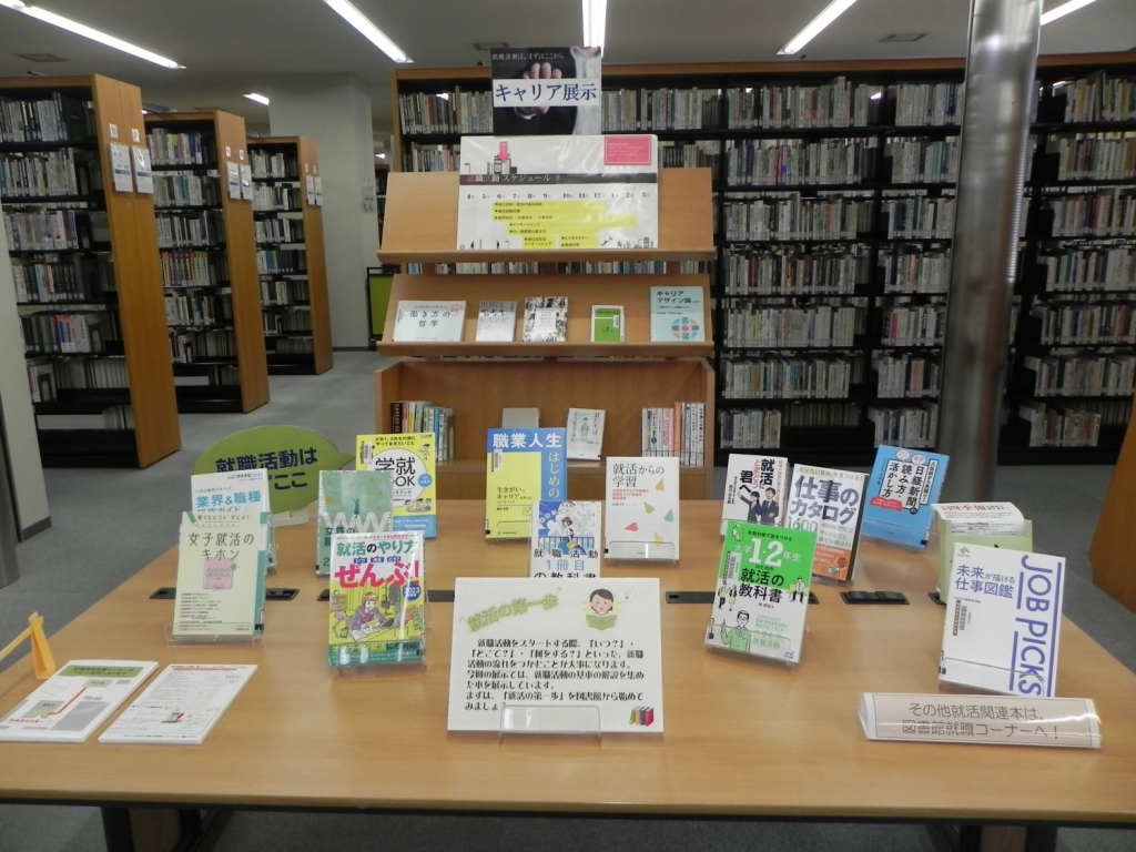 今回の展示では、就職活動の基本の解説を集めた本を展示しています。