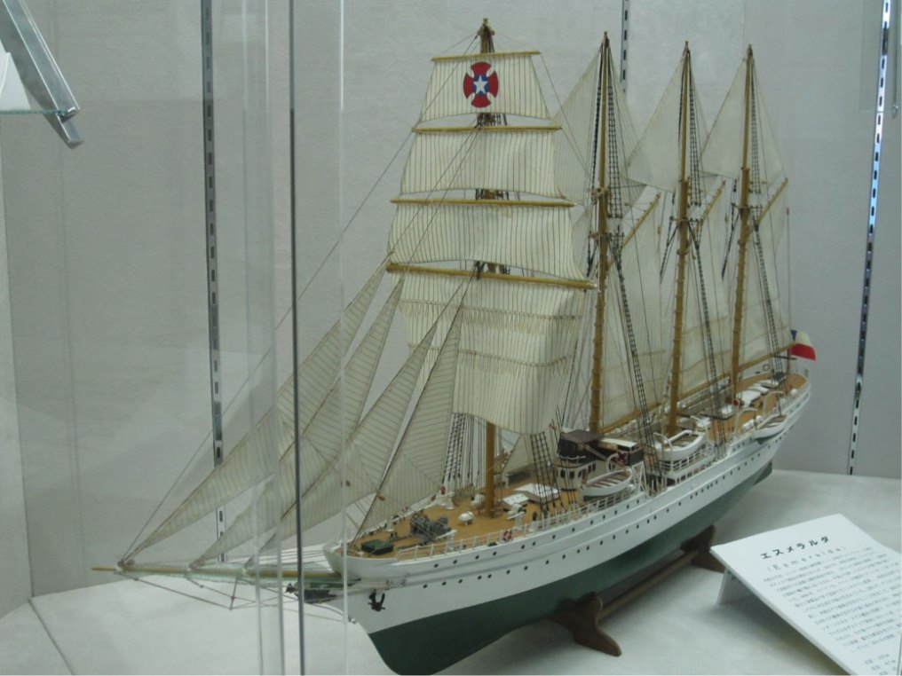 練習帆船エスメラルダの模型を中心に、海を舞台に戦った世界の帆船の歴史を感じられる資料展となっております。是非ご鑑賞ください。